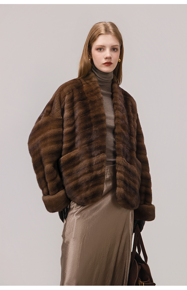 The design features a simple and small stand up collar, a low-key and luxurious traditional craftsmanship, and continues the retro sentiment with the hands of craftsmen. It creates a natural sense of layering and horizontal texture, breaking the traditional sense of heaviness. With a soft and free spirited body that blends retro charm with modern design, the light retro version recreates the luxurious charm in current fashion, telling the story of cross century elegance and reconstructing fur texture with "millimeter level aesthetics".